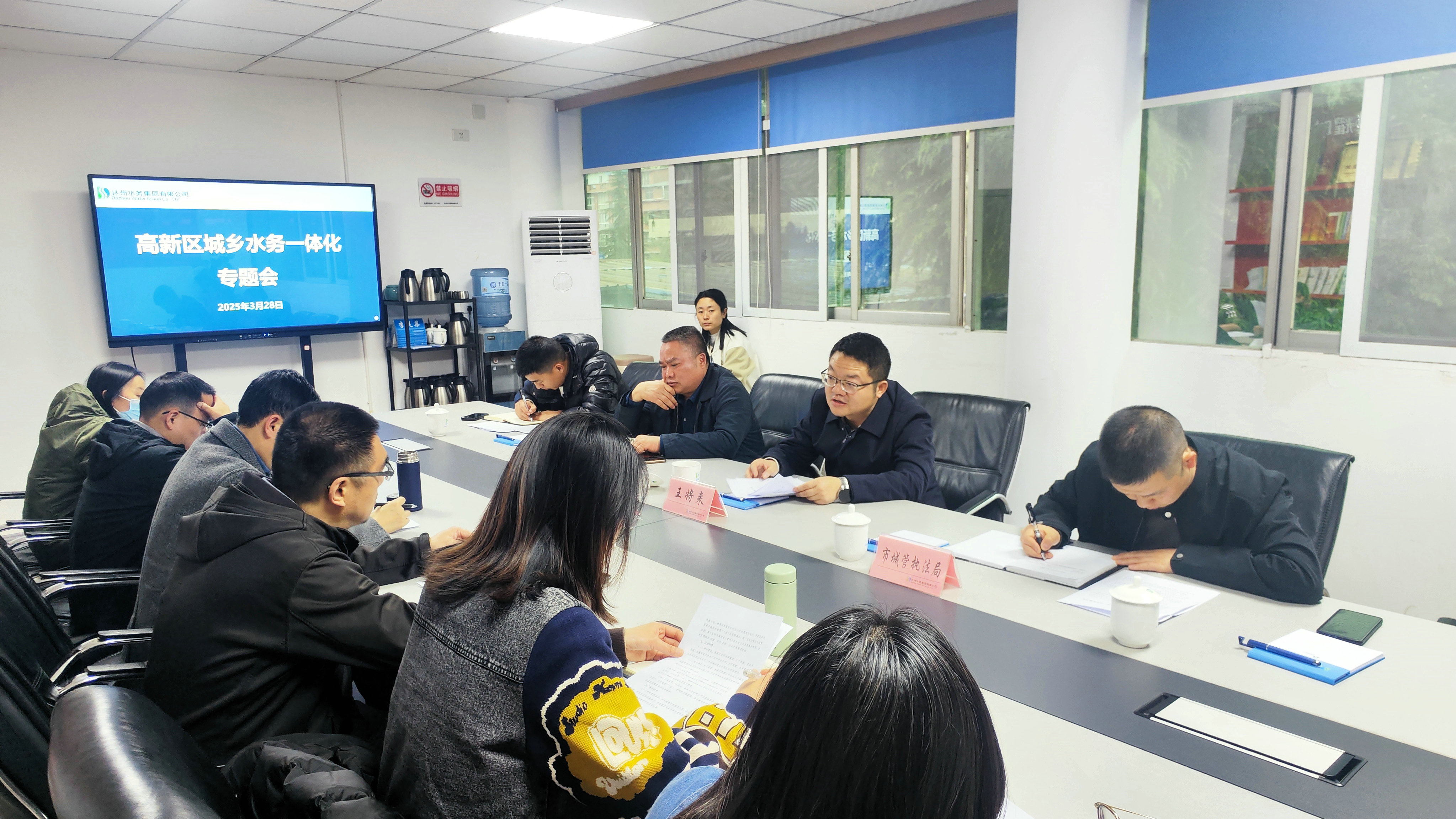 3月28日下午,高新區(qū)城鄉(xiāng)水務(wù)一體化推進(jìn)會(huì)在水務(wù)集團(tuán)召開。高新區(qū)管委會(huì)副主任王將來,水務(wù)集團(tuán)黨委副書記、總經(jīng)理熊戈亮,黨委委員、副總經(jīng)理?xiàng)盍?,黨委委員、副總經(jīng)理、財(cái)務(wù)總監(jiān)(兼)王春雷,總工程師李莉君及高新區(qū)、市城管局、水務(wù)集團(tuán)相關(guān)部門負(fù)責(zé)人參加會(huì)議。