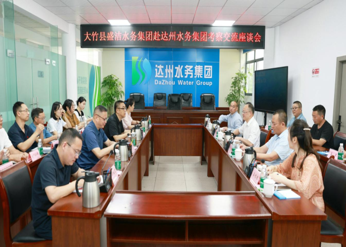 7月2日,大竹縣盛潔水務(wù)集團(tuán)有限公司黨委書記、董事長(zhǎng)孔祥勝一行8人來(lái)我司考察交流供水合作及經(jīng)營(yíng)服務(wù)工作,集團(tuán)公司黨委書記、董事長(zhǎng)盧輝,黨委副書記、總經(jīng)理熊戈亮,黨委委員、副總經(jīng)理、財(cái)務(wù)總監(jiān)王春雷,總工程師李莉君,相關(guān)業(yè)務(wù)部門參加。