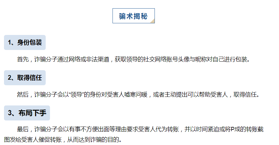 案例二:冒充領(lǐng)導(dǎo)詐騙下屬