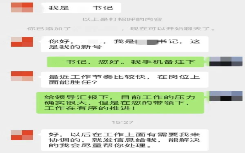 近期,“冒充領(lǐng)導(dǎo)、熟人等特定類身份”電信網(wǎng)絡(luò)詐騙案高發(fā),詐騙分子利用黨政領(lǐng)導(dǎo)微信頭像,以企業(yè)法人和單位下屬為主要目標(biāo),主動(dòng)添加微信好友,先假裝關(guān)心企業(yè)發(fā)展或假意慰問下屬來獲取信任,然后以親朋好友或者上級領(lǐng)導(dǎo)急需資金周轉(zhuǎn),自己不便直接轉(zhuǎn)賬為由來實(shí)施詐騙。