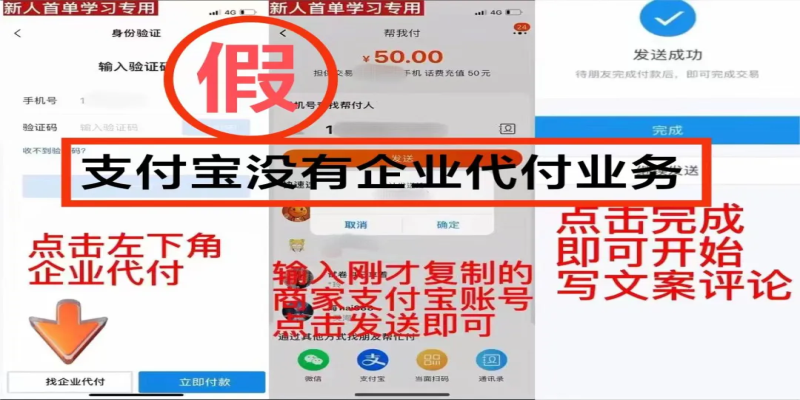 · 網(wǎng)絡(luò)刷單本身就是違法行為,任何形式的刷單都是詐騙。不要輕信網(wǎng)絡(luò)上“無(wú)需墊付資金”、“企業(yè)代付”、“無(wú)風(fēng)險(xiǎn)”的刷單兼職廣告,支付寶沒(méi)有企業(yè)代付業(yè)務(wù)。切記天上不會(huì)掉餡餅,避免上當(dāng)受騙。