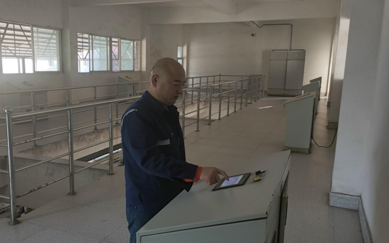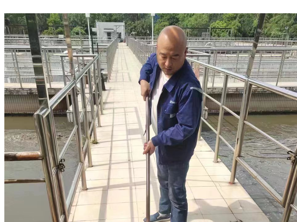 為了實時上傳的6個指標能正常穩(wěn)定達標,無論天晴下雨,不顧臭味撲鼻,陳軍每隔1-2小時就會對各水池和機房進行巡視,還要對生化池人工格柵清理出的垃圾進行打撈;還要巡視查看粗細格柵是否正常清渣,沉沙池回流泵、刮泥機、淲池是否正常運行,并根據(jù)水量情況及時調(diào)整風機風量大小。尤其是在刮泥機出現(xiàn)較大故障時,他需要一邊自行處理,一邊請維修班協(xié)助,為了確保盡快恢復生產(chǎn),他會與大家通宵奮戰(zhàn)。