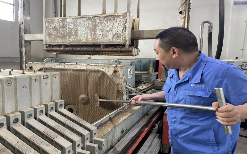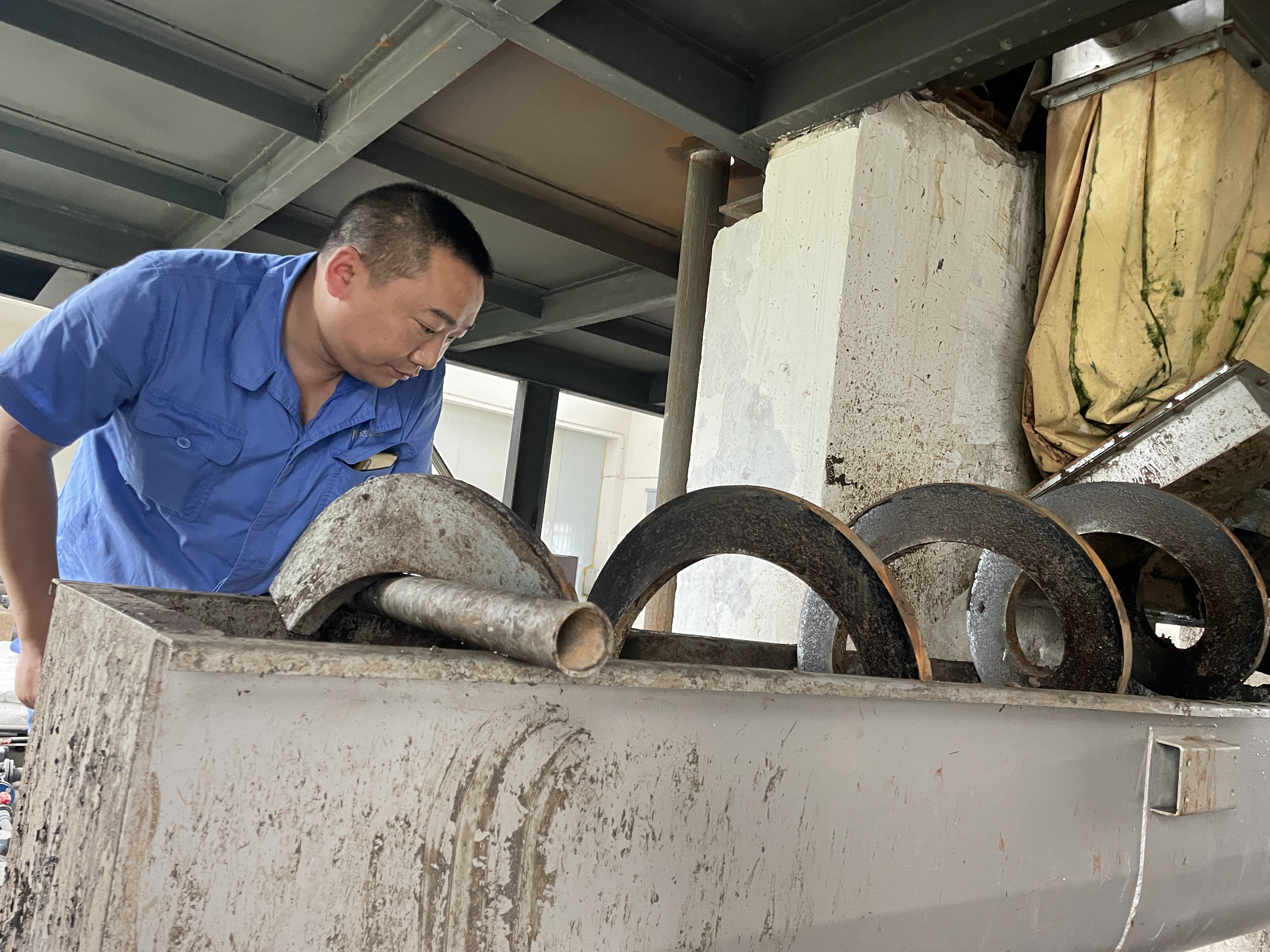 2018年1月,王穎被安排到新建成的周家壩污水廠工作,由于有污泥脫水的工作經(jīng)驗,帶頭學(xué)習(xí)新廠新設(shè)計的板框壓濾系統(tǒng)的重擔自然而然落在他肩上,他沒有抱怨新廠離家遠、交通不便利、脫水車間環(huán)境差等客觀問題,而是靜下心來一頭扎進學(xué)習(xí)的熱潮中。板框脫水系統(tǒng)看似只有進泥、調(diào)泥、壓泥、出泥幾道工序,但整套流程下來需要進行數(shù)十次步驟,還要根據(jù)泥質(zhì)調(diào)整步驟中的參數(shù),不厭其煩地記錄下每一次的試驗數(shù)據(jù),午餐時間他都毅然堅守在現(xiàn)場,同事們幫忙打來的飯,基本上是扒拉幾口便又和師傅討論起問題。尤其是炎熱的夏天“汗如泉涌”,機房的氣味刺鼻難聞,很多人不愿久干,為了能保證新廠正常出水投運,做好污泥處理的大后方,他堅持下來了,正是這樣重復(fù)的“常規(guī)操作”讓他順利出師。