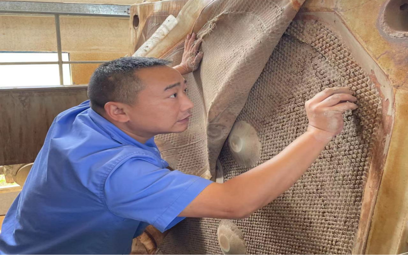 自第一次中央環(huán)保督察以來,污水廠就被列入了督查組的年檢名單,環(huán)保壓力可想而知,特別是一線工作者,當班期間要更加緊繃環(huán)保這根弦,處理水質(zhì)達標排放是毋庸置疑的重中之重。周家壩污水廠作為新建的廠,每年要接受數(shù)十次大大小小的檢查,加上新冠疫情帶來的恐慌,王穎會協(xié)助廠負責(zé)人做好職工們的心理疏導(dǎo)工作,將運行與污泥脫水緊密聯(lián)系在一起,擰成一股繩。遇到生產(chǎn)難題時,他不計較休息日,經(jīng)常到現(xiàn)場和團隊商量對策,尤其是當污泥末端處置受限時,他會主動做好脫水操作工們的工作,并提出增加板框脫泥的強度,為公司幾個廠的污泥外運做出自己的貢獻。此外,他還經(jīng)常為職工宣傳和爭取有關(guān)福利政策,讓公司的運行團隊更加有干勁。