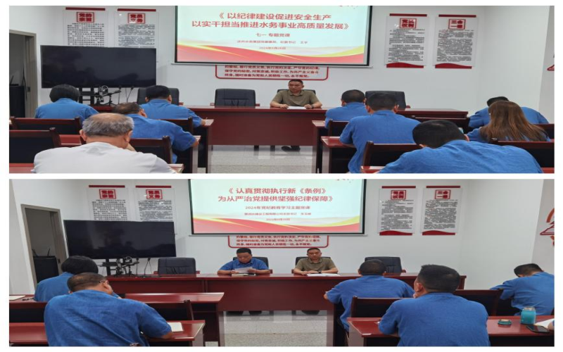 強黨性,講好一黨專題黨課。 一堂生動的黨課,是一場深刻的理論教育、一次初心的凈化洗禮。6月26日,支部聯(lián)系領導集團黨委委員、紀委書記王宇為支部全體黨員上了一堂主題為“以紀律建設促進安全生產(chǎn) 以實干擔當推進水務事業(yè)高質(zhì)量發(fā)展”的黨課,并對全體黨員同志如何嚴格遵守黨規(guī)黨紀提出更高的要求。支部書記朱玉峰詳細解析了《中國共產(chǎn)黨紀律處分條例》中的“六大紀律”的相關內(nèi)容,讓全體黨員對“六大紀律”有了更清醒的認識,黨性素養(yǎng)被進一步錘煉。