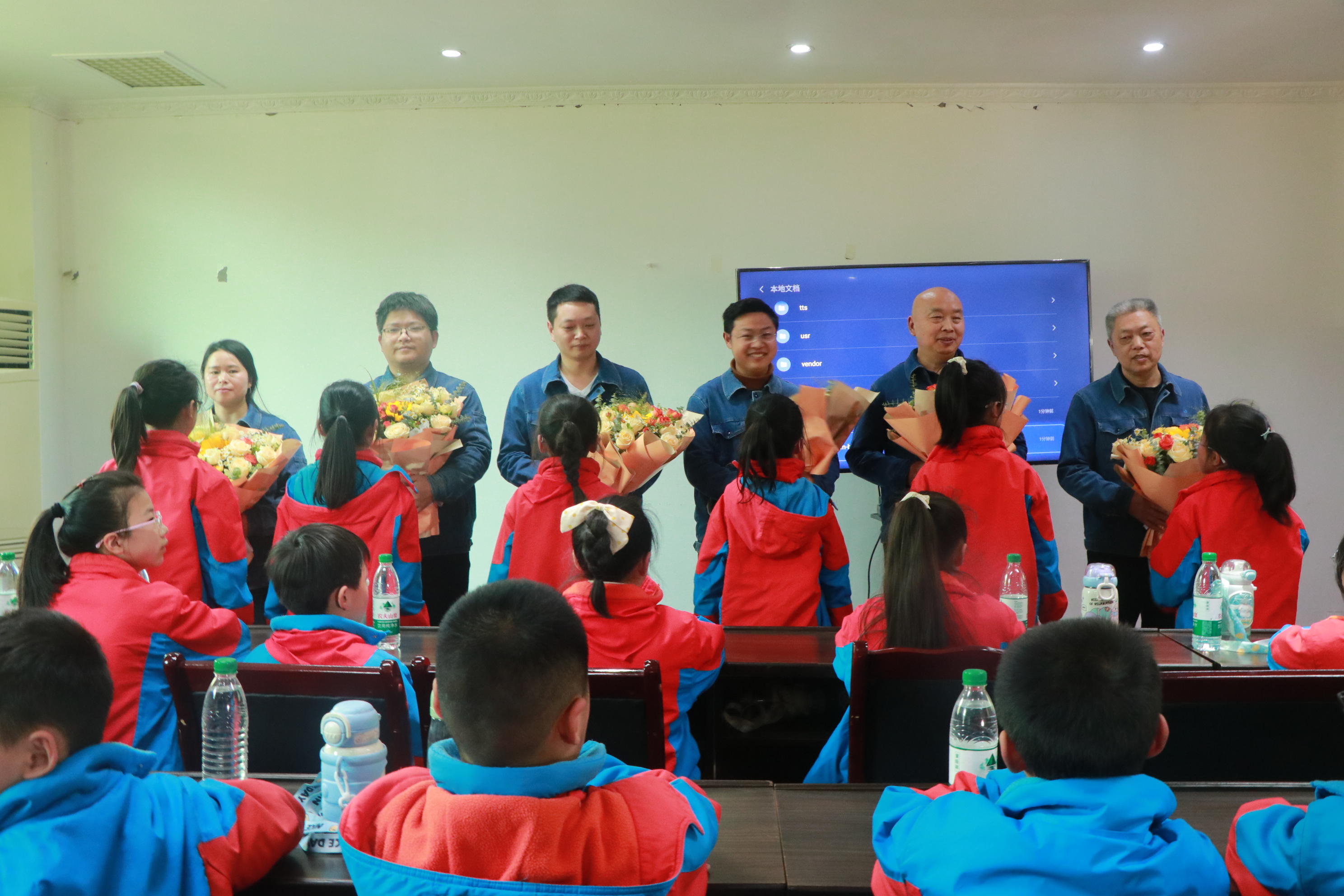 工作人員結(jié)合世界水日與中國(guó)水周的主題,為同學(xué)們深入淺出地講解中國(guó)水資源特點(diǎn),以及污水產(chǎn)生的危害和處理的必要性,讓大家深刻認(rèn)識(shí)到保護(hù)水資源刻不容緩。小學(xué)生代表們獻(xiàn)鮮花合影留念、觀看工藝處理視頻(動(dòng)畫(huà)片)。
