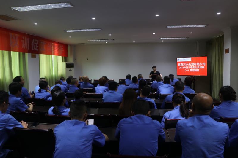 鑒于當(dāng)前環(huán)保新形式需要,為努力打造一支高素質(zhì)、高效率、高執(zhí)行力的團(tuán)隊(duì),使公司在激烈的市場(chǎng)競(jìng)爭(zhēng)中展現(xiàn)出較強(qiáng)的生命力和競(jìng)爭(zhēng)力,惠泉公司本年度第二次全員培訓(xùn)在鮮家壩污水廠會(huì)議室開(kāi)班。集團(tuán)公司副總、惠泉公司執(zhí)行董事李虹霖出席開(kāi)班動(dòng)員會(huì)。